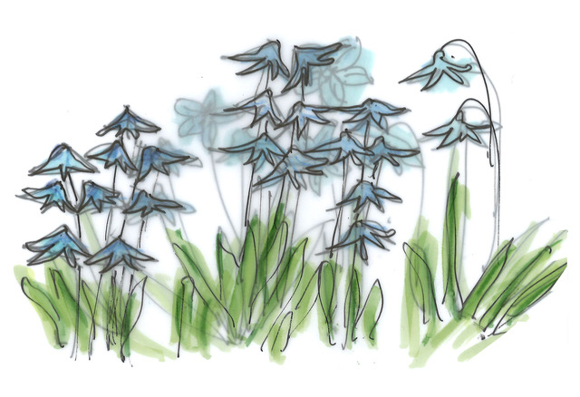 Scilla of sterhyacint is een bolgewas. Je kunt hem laten verwilderen. Je ziet hem vaak in parken onder bomen. Wij hebben de oosterse sterhyacint in de tuin gehad, maar op een gegeven moment was hij weer verdwenen. Toch maar weer eens aanplanten, want hij heeft prachtige kleine, hemelsblauwe bloemetjes. Volgens de website “de flora van Nederland” is hij lid van de aspergefamilie. Net als de oosterse sterhyacint ruikt de “traditionele” hyacint, die een hele grote bloem heeft en in veel kleuren te koop is, heel lekker. Bij ons thuis verwerkte mijn moeder de hyacinten altijd met takjes hulst in kerststukjes die ze op de eettafel zette. Ik herinner me dat de hyacint altijd topzwaar werd als hij helemaal in bloei stond en dan op een gegeven moment gestut moest worden, omdat hij anders omviel. Mijn lieveling is de boshyacint, oftewel wilde hyacint. Die is niet alleen mooi, maar ruikt ook lekker. Hij is inheems in Nederland. Als we in het voorjaar tussen Hilversum en Bussum door het bos rijden staan ze in grote groepen langs het fietspad. Bij mij in de tuin is een familielid, de Spaanse hyacint, spontaan opgekomen. Omdat hij het zo fijn heeft onder de vruchtbomen, hebben we een groot aantal planten bijgekocht, ondanks dat hij nauwelijks geurt. Dit is een verwilderde soort die niet inheems is in Nederland. Hij bloeit wat uitbundiger dan de wilde hyacint, maar geurt niet. Hij is ook wat minder los van opbouw. Maar wel een plant om van te genieten.