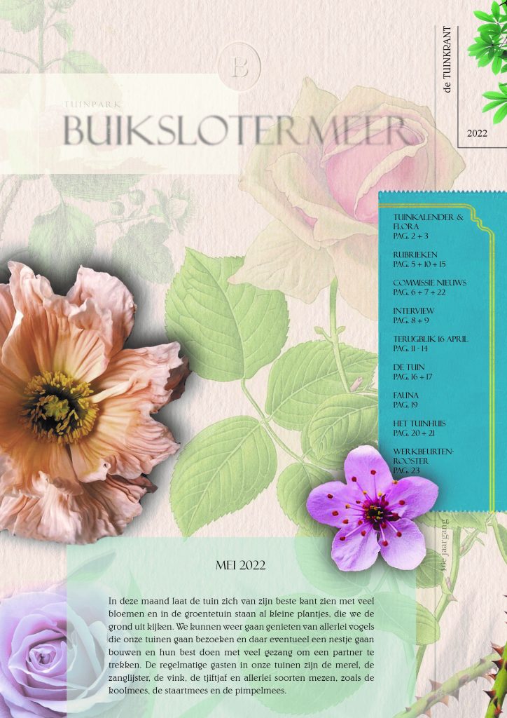 De tuinkrant verschijnt vijf keer per tuinseizoen, en is hier op de website van het
